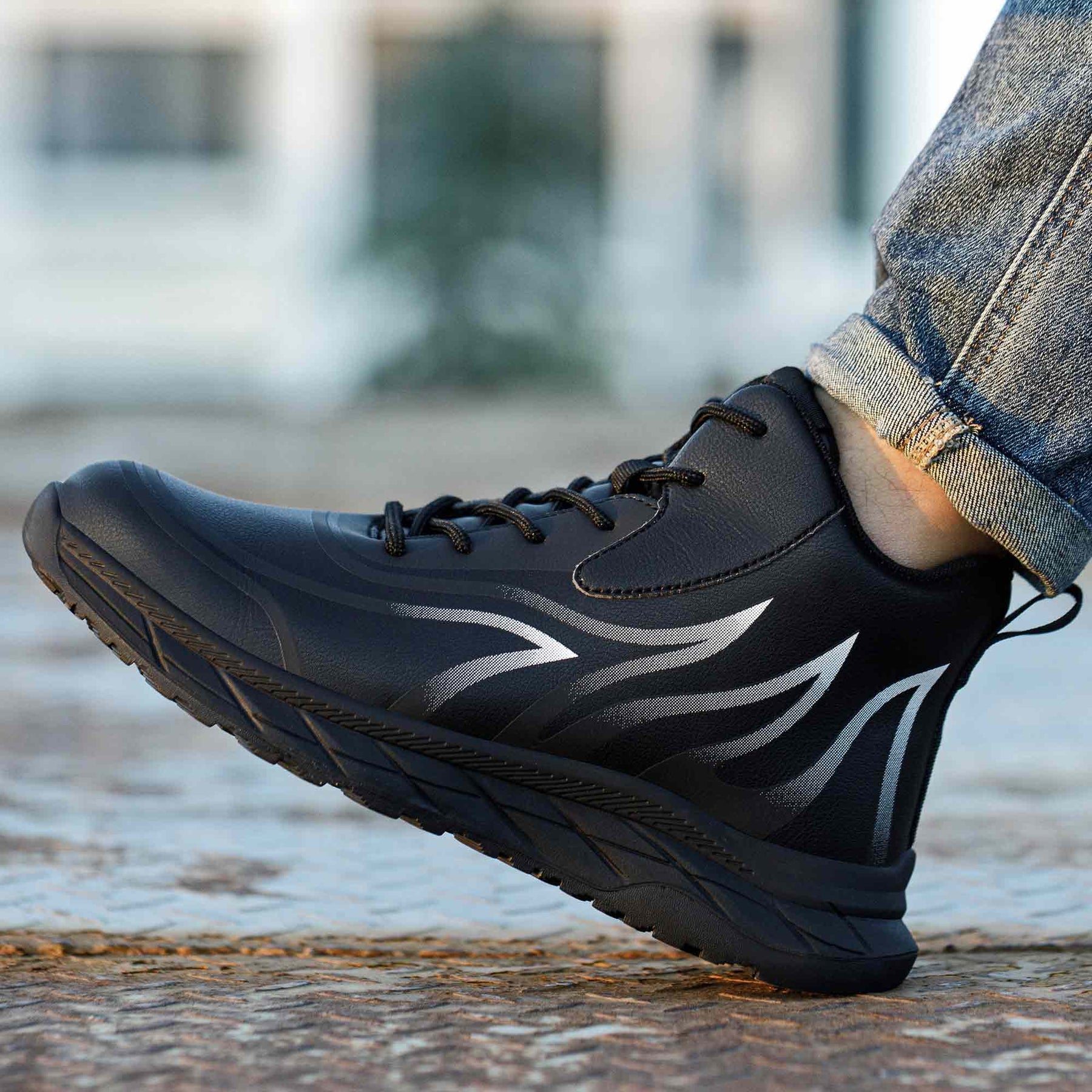 Der fortschrittliche Stahlkappenschutz schützt Ihren Fuß vor gefährlichen herabfallenden Gegenständen. Er hält auch der Gewalteinwirkung von scharfen und spitzen Gegenständen stand. Dieser Sicherheitsschuh bietet umfassenden Komfort, Schutz und Halt.